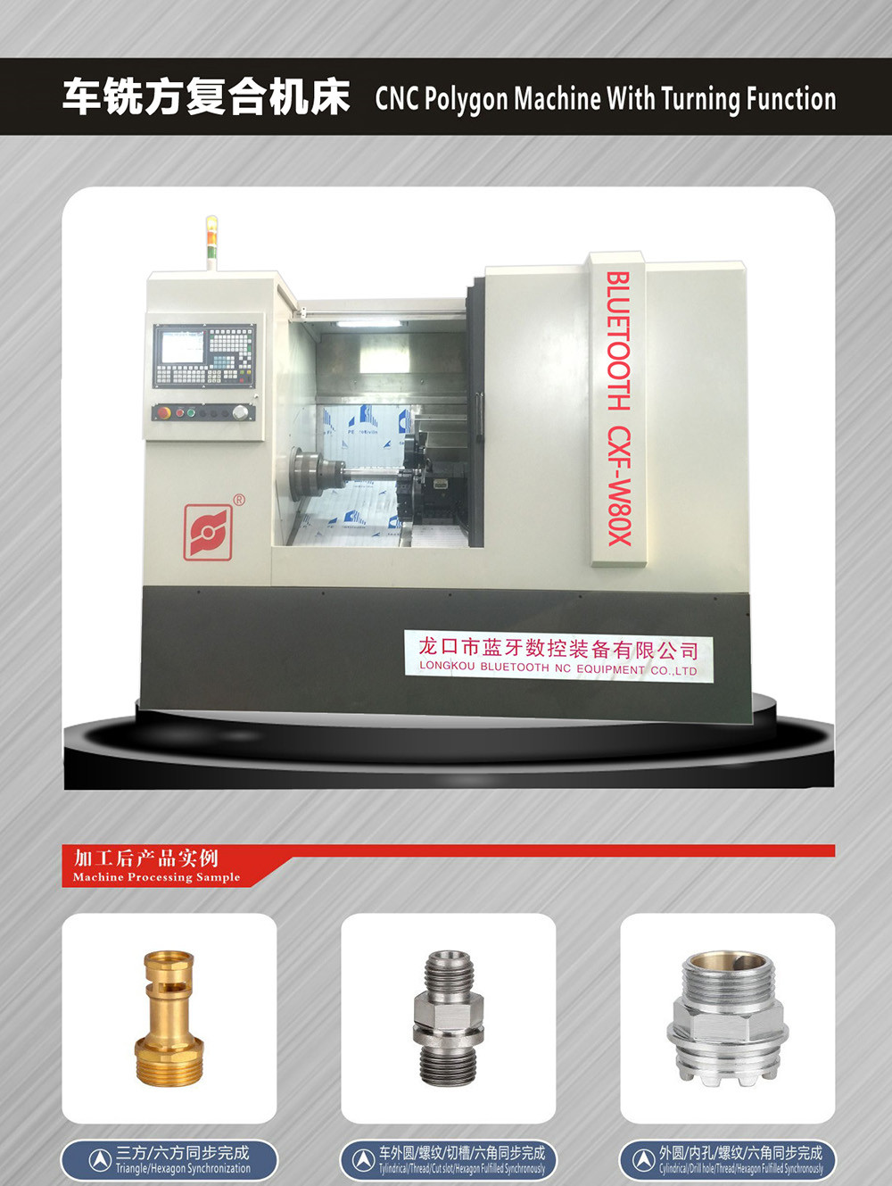 2.床头箱优化设计,适合盘类、轴类零件的车削加工,可以进行直线、圆弧、公英制螺纹、多头螺纹、多棱体、多端面、多角等复杂工序的精密自动化加工。